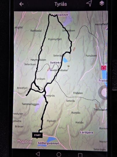 Vi gikk til Tyriåsen 449 moh. via Lille Åletjønn, Hvålsetra og Gavelstadsetra. Faktisk hele 1,36 mil. Fin tur med jevn stigning uten de store utfordringene.
